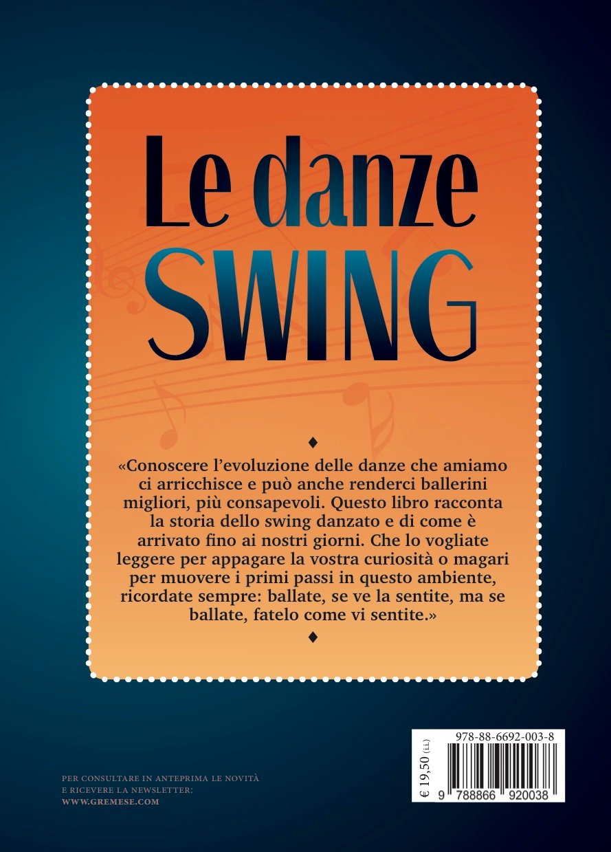 Le “danze swing” – espressione con cui si intendono qui essenzialmente le danze sociali legate alla musica blues, jazz, swing e rock’n’roll – stanno entusiasmando ovunque nel mondo un crescente pubblico di appassionati anche tra le nuove generazioni. In Italia, il volume di Paola Bruno è il primo che cerca di riordinarne le conoscenze in modo così articolato e insieme così agilmente fruibile anche dai lettori meno esperti. A un ampio capitolo iniziale sulla genesi e l’evoluzione di questi balli, seguono altre sezioni dedicate alle caratteristiche tecniche di ciascuno di essi (i passi e le figure di base, ma non solo), all’abbigliamento da adottare per un perfetto look rétro, alle regole che disciplinano le competizioni, alle poche ma indispensabili nozioni musicali e ritmiche di cui ogni ballerino deve essere in possesso. I dettagliati tutorial fotografici su passi e sequenze di movimenti offrono un ulteriore strumento pratico a disposizione degli appassionati, al quale però si affiancano anche – per uno sguardo alla storia e all’attualità della ribalta swing italiana – le testimonianze di molti protagonisti e una rassegna della fervida scena milanese dal dopoguerra a oggi. Infine, non si può non segnalare la straordinaria valenza “multimediale” di questo volume: il quale in apposite note a pie di pagina riporta – selezionati dall’autrice tra le migliori risorse disponibili in Rete – oltre cento link a filmati storici, video tutorial e testi di approfondimento. Ciascuno di essi subito visualizzabile sullo smartphone o al pc con un semplice click, grazie all’applicazione gratuita ClipCase.
